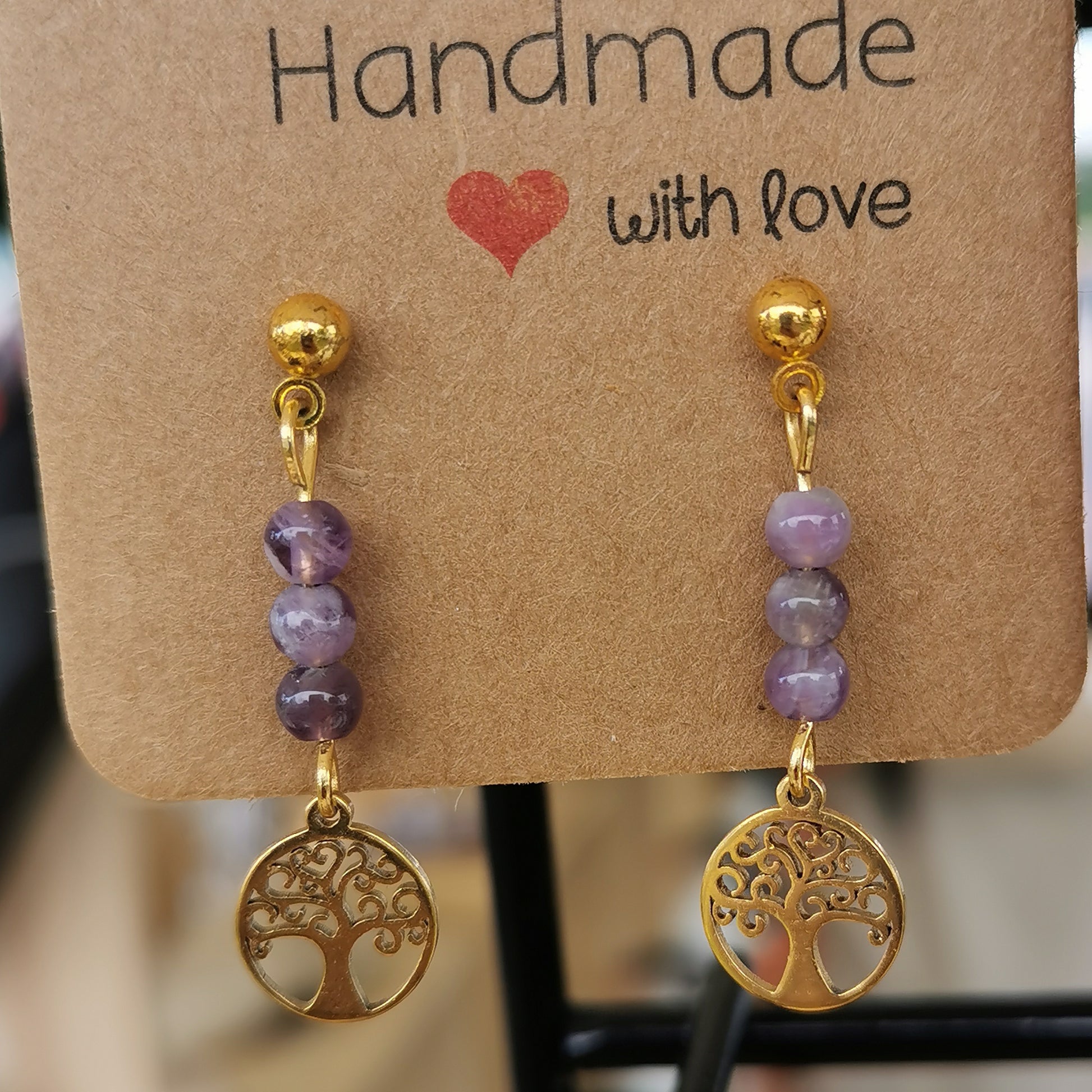 Boucles d'oreilles Arbre de vie disponibles en acier inoxydable durable et hypoallergénique version argenté ou doré.
