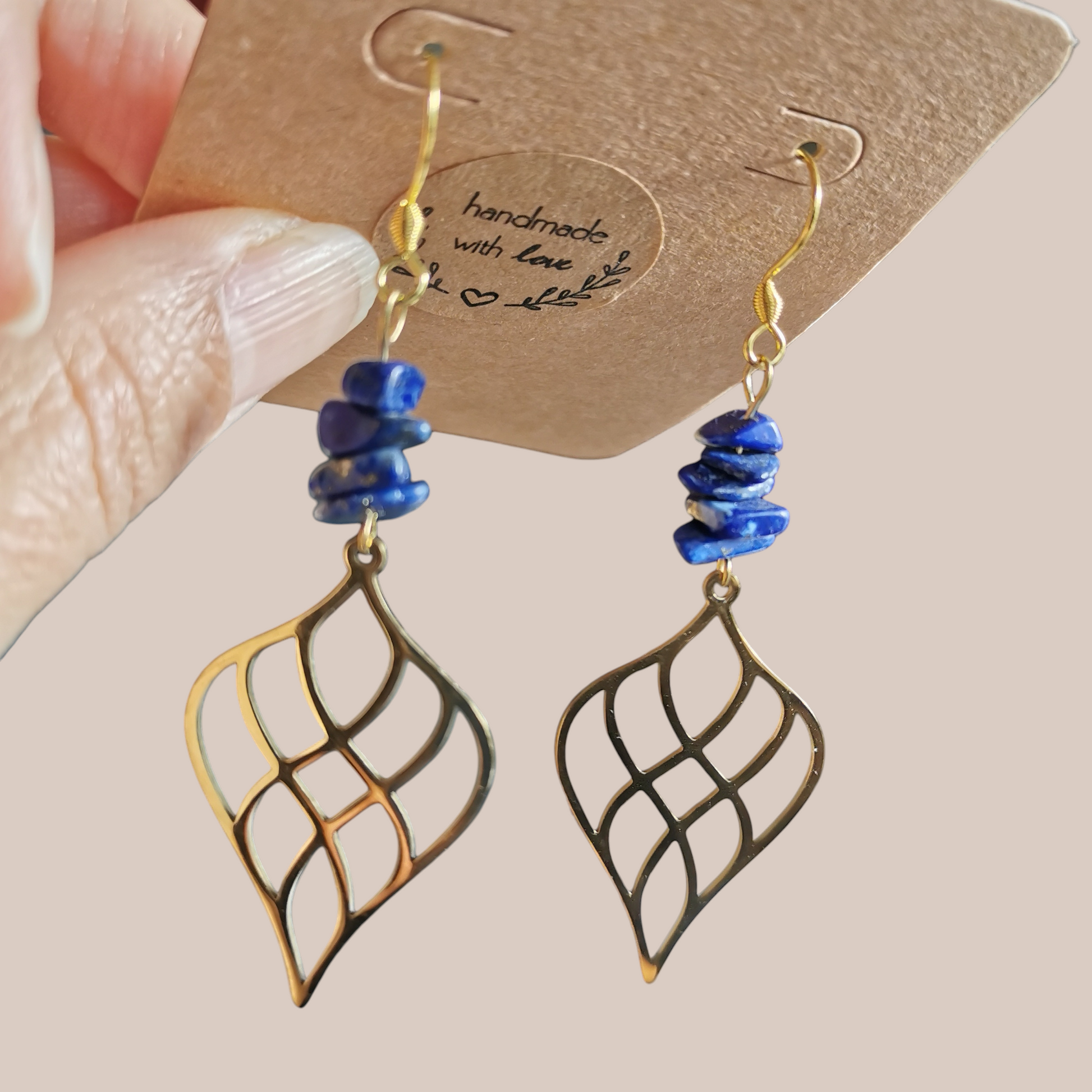 Boucles d'oreilles dorées en lapis-lazuli