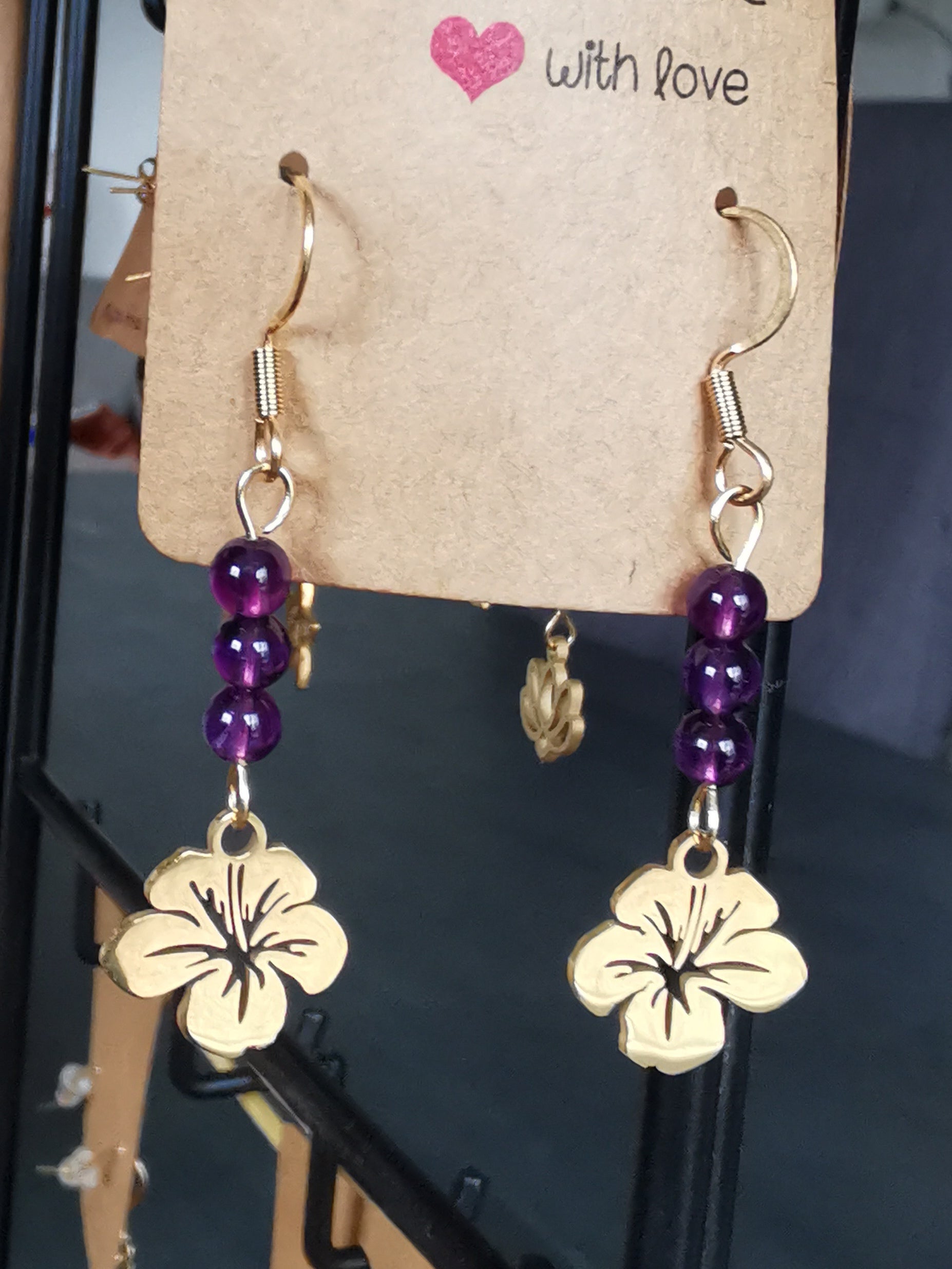 Boucles d'oreilles en acier inoxydable durable et hypoallergénique et pierres naturelles de qualité.