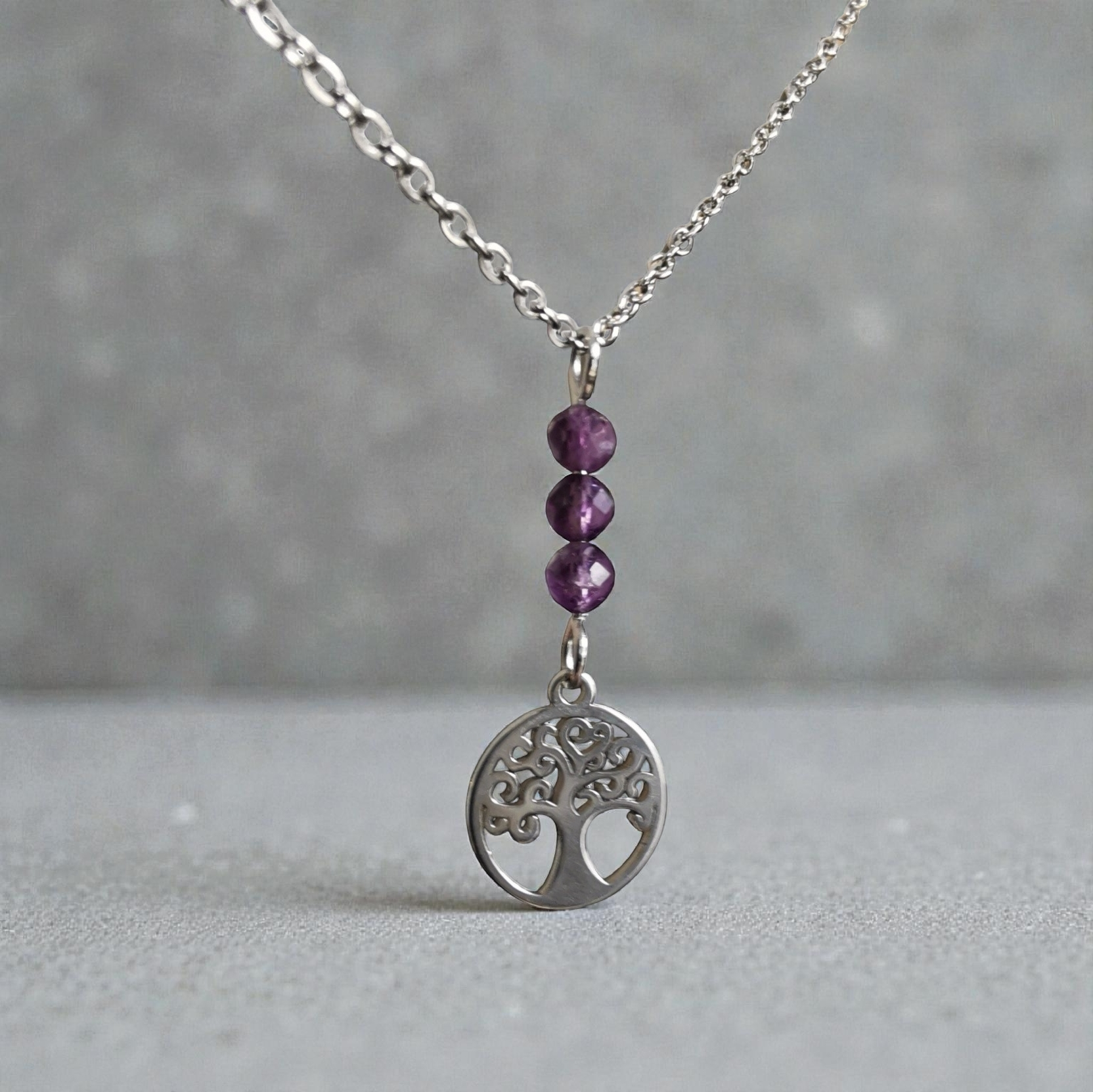 Collier en acier inoxydable durable et hypoallergénique et pierres naturelles de qualité.