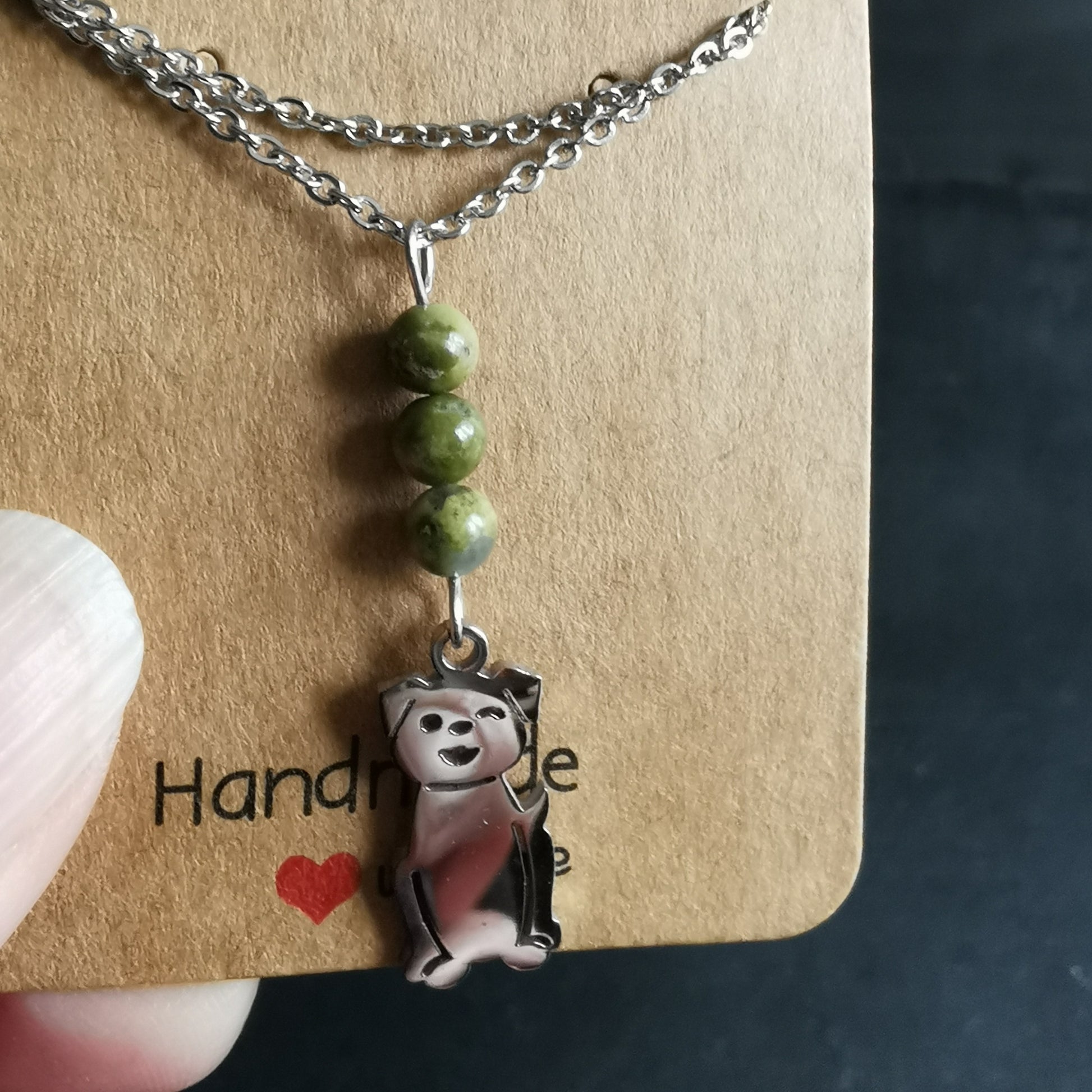 Collier en acier inoxydable durable et hypoallergénique et pierres naturelles de qualité.
